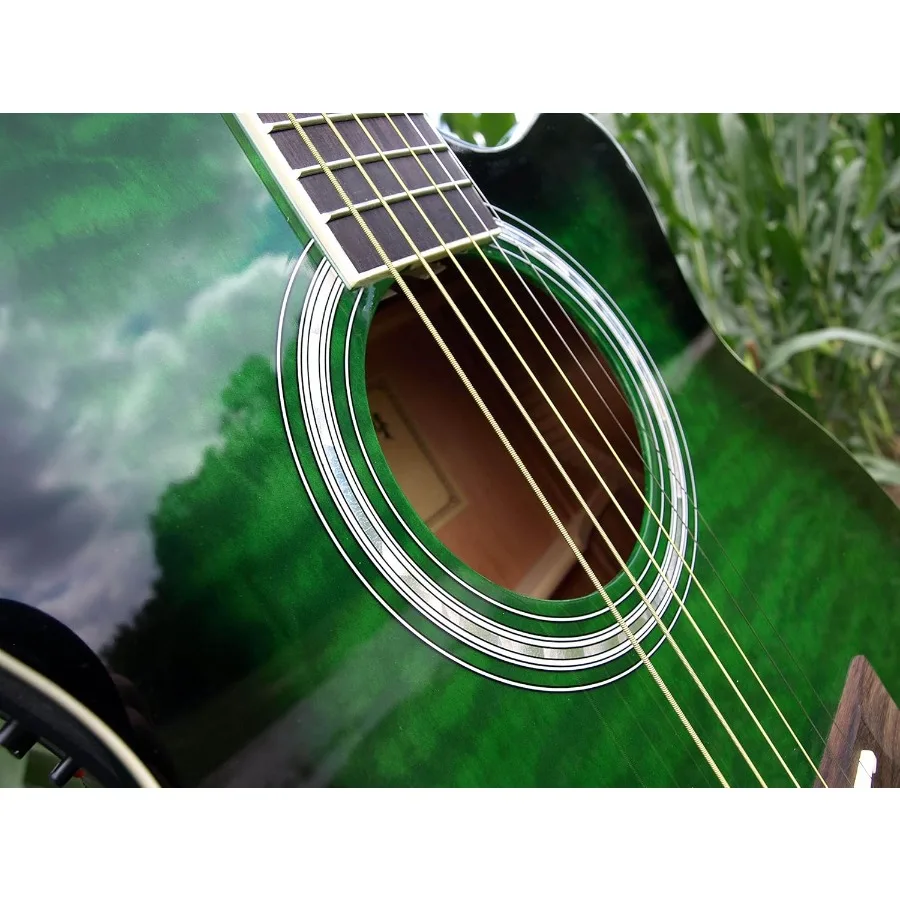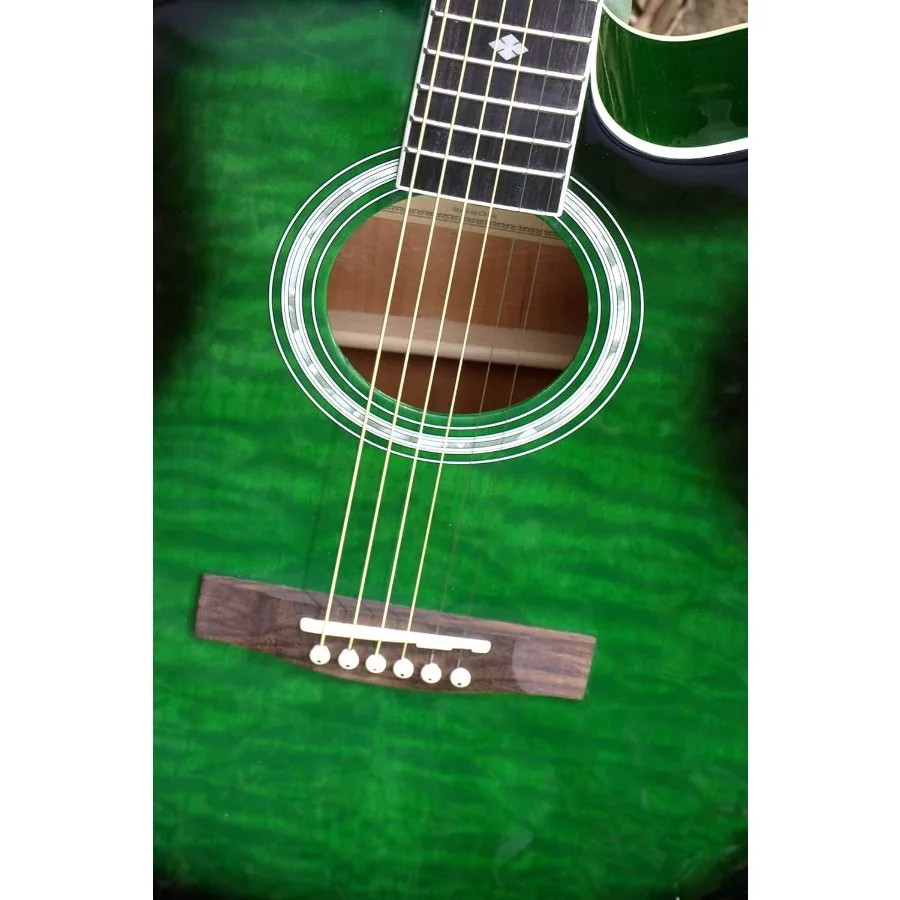 Welcome to TNT Tech Gadgets. This 6-string acoustic-electric guitar features a stunning quilted green finish, perfect for both live performances and studio recording. Its solid construction enhances sound projection and produces rich, balanced tones. Designed for right-handed players, it offers smooth playability and comfortable fretting for extended sessions. Ideal for a wide range of music styles, including pop, rock, blues, and jazz. Built-in electronics allow easy amplification for stage or recording use. High-quality hardware ensures stable tuning and reliable performance. The elegant quilted finish adds visual appeal alongside its professional sound. Lightweight yet durable, it is perfect for beginners, enthusiasts, and professional musicians alike. This guitar combines aesthetic beauty, enhanced sound, and versatile functionality in one instrument.